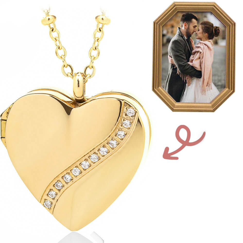 Herz-Fotomedaillon-Halskette "funkelnde Eleganz"
