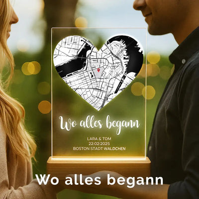 Personalisierte LED-Lampe aus Acrylglas "Wo alles begann #2" | Deine Stadt - Deine Karte - Deine Liebe