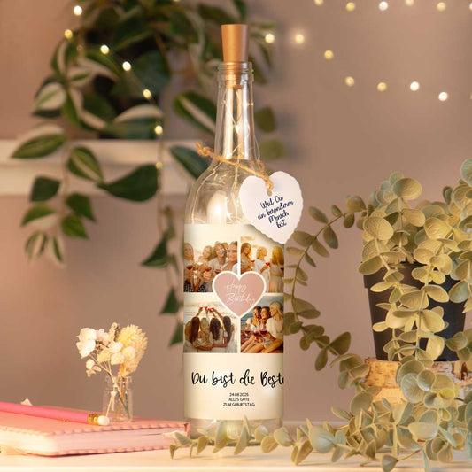 Personalisierte Lichterflasche "Fotocollage #5 Herz"
