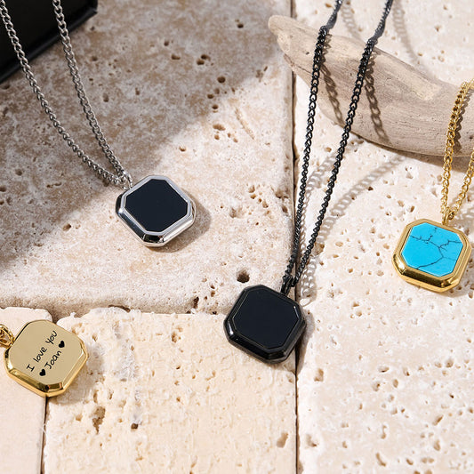 Für Herren: Naturstein-Halksette "Oktagon" - gravierbar