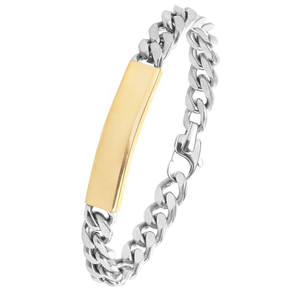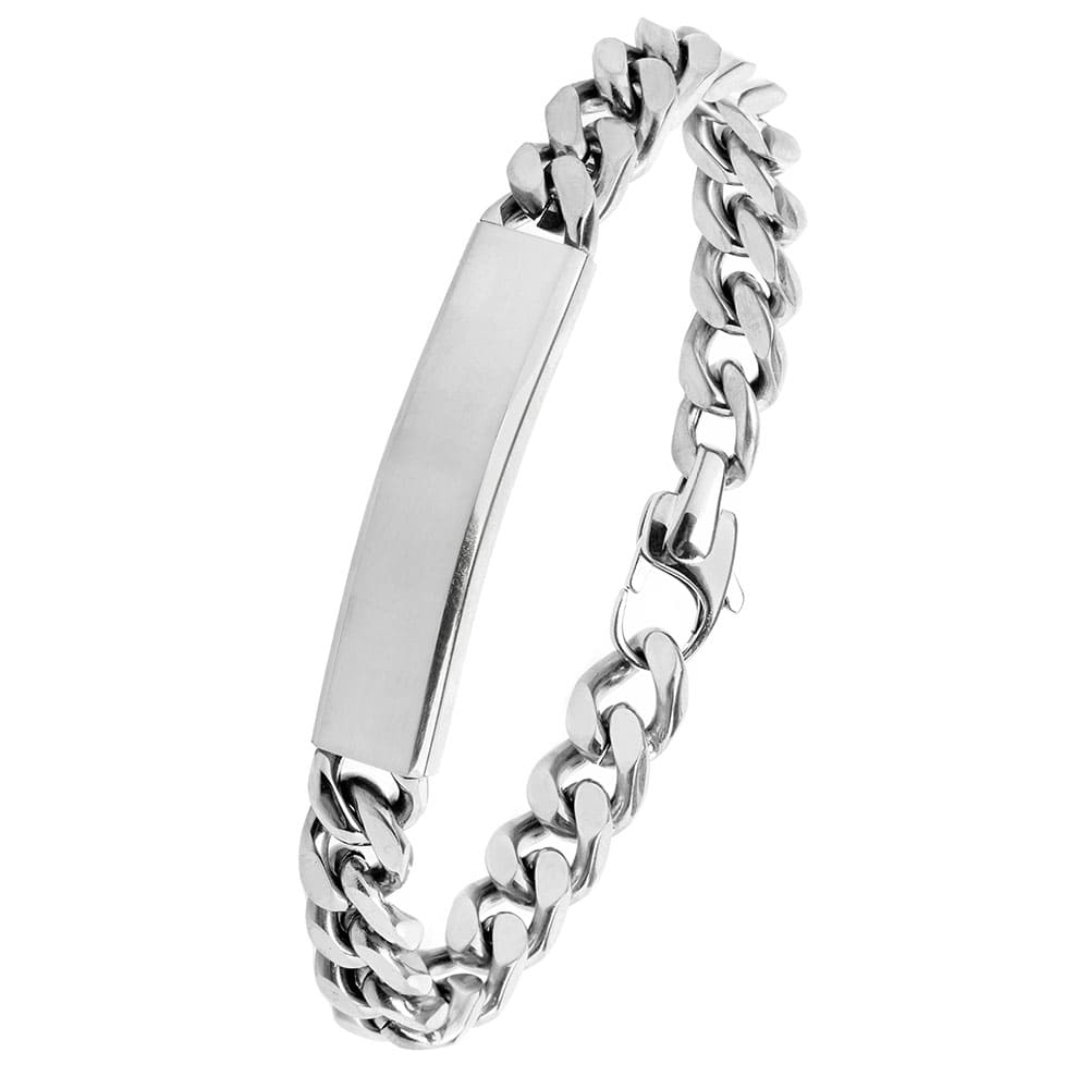 Panzerketten-Gravurarmband für Herren aus massivem Edelstahl. Die Besonderheit: Der Karabiner-Verschluss lässt sich in jedes Armband-Glied einhaken, sodass Du das Armband beliebig kurz tragen kannst (maximale Länge 22.5 cm). Damit ist gewährleistet, dass das Gravurarmband an jedes Herren-Handgelenk passt. Das hochwertige Edelstahl in Kombination mit der massiven Panzerkette sorgt für ein maskulines Aussehen. So ist das Armband ein Top-Accessoire für echte Typen. Einzigartiger Herren-Schmuck - auch das ist Himmelsflüsterer!