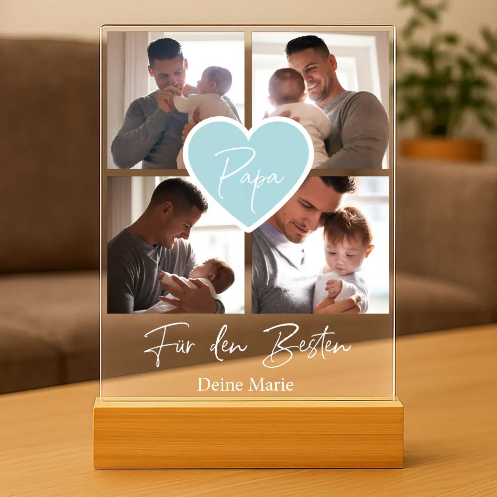 Erstelle dein eigenes ganz persönliches „Fotocollage #2“ Bild als unglaublich schönes Geschenk und verschenke es auf einem Acrylglas mit Holzfuß (DIN A5).