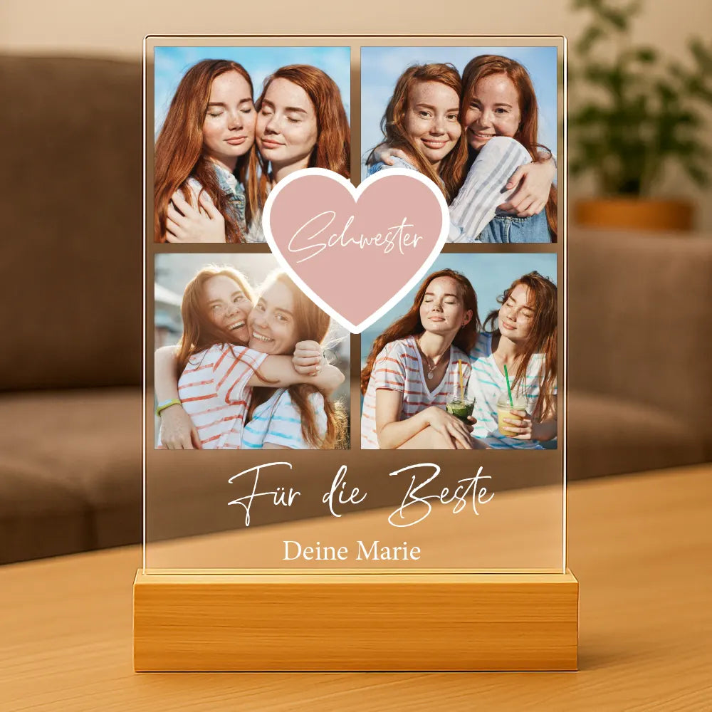 Erstelle dein eigenes ganz persönliches „Fotocollage #2“ Bild als unglaublich schönes Geschenk und verschenke es auf einem Acrylglas mit Holzfuß (DIN A5).
