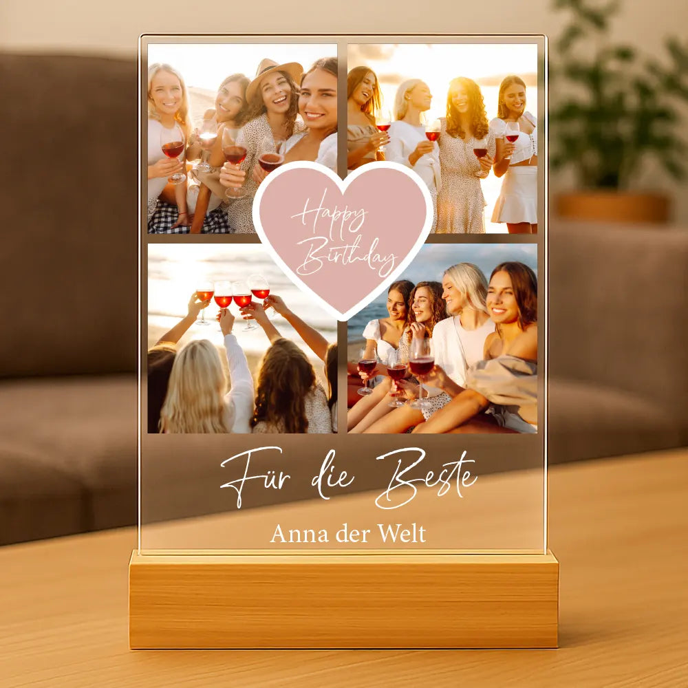 Erstelle dein eigenes ganz persönliches „Fotocollage #2“ Bild als unglaublich schönes Geschenk und verschenke es auf einem Acrylglas mit Holzfuß (DIN A5).