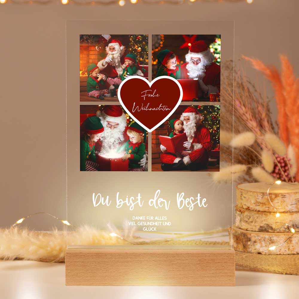 Erstelle dein eigenes ganz persönliches „Fotocollage #2“ Bild als unglaublich schönes Geschenk und verschenke es auf einem Acrylglas mit Holzfuß (DIN A5).