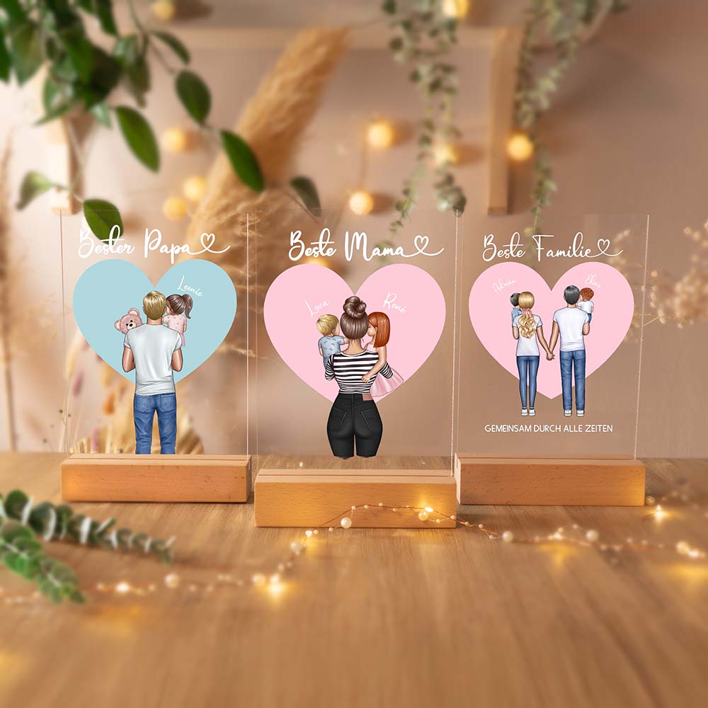 Erstelle dein eigenes ganz persönliches "My Family #2" Bild als unglaublich schönes Geschenk und verschenke es auf einem Acrylglas mit Holzfuß (DIN A5).