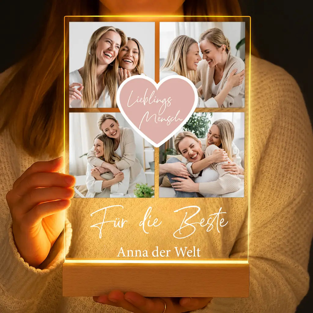 Erstelle dein eigenes ganz persönliches „Fotocollage #2“ Bild als unglaublich schönes Geschenk und verschenke es auf einer LED-Lampe aus Acrylglas (DIN A5).