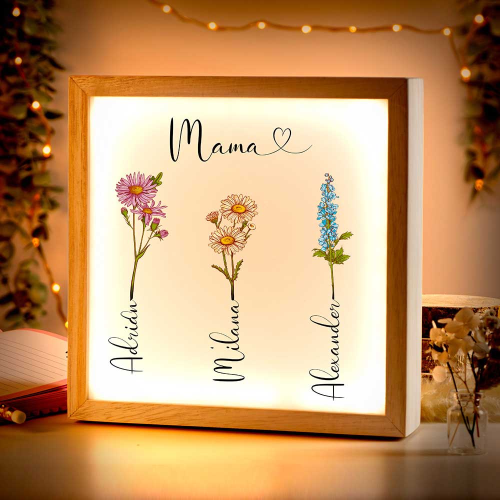 Beleuchteter Bilderrahmen inkl. personalisiertem Bild "Geburtsblume"