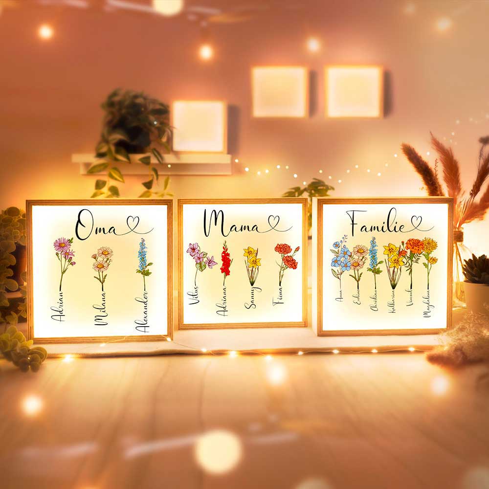 Beleuchteter Bilderrahmen inkl. personalisiertem Bild "Geburtsblume"