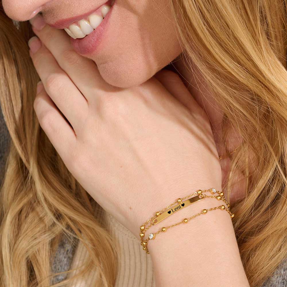 Wenn du gerne viele, kleine Kettchen am Arm trägst und auf eine besondere Message nicht verzichten möchtest, dann ist dieses Armband perfekt für dich. So schön kann Gravurschmuck sein - original Himmelsflüsterer!