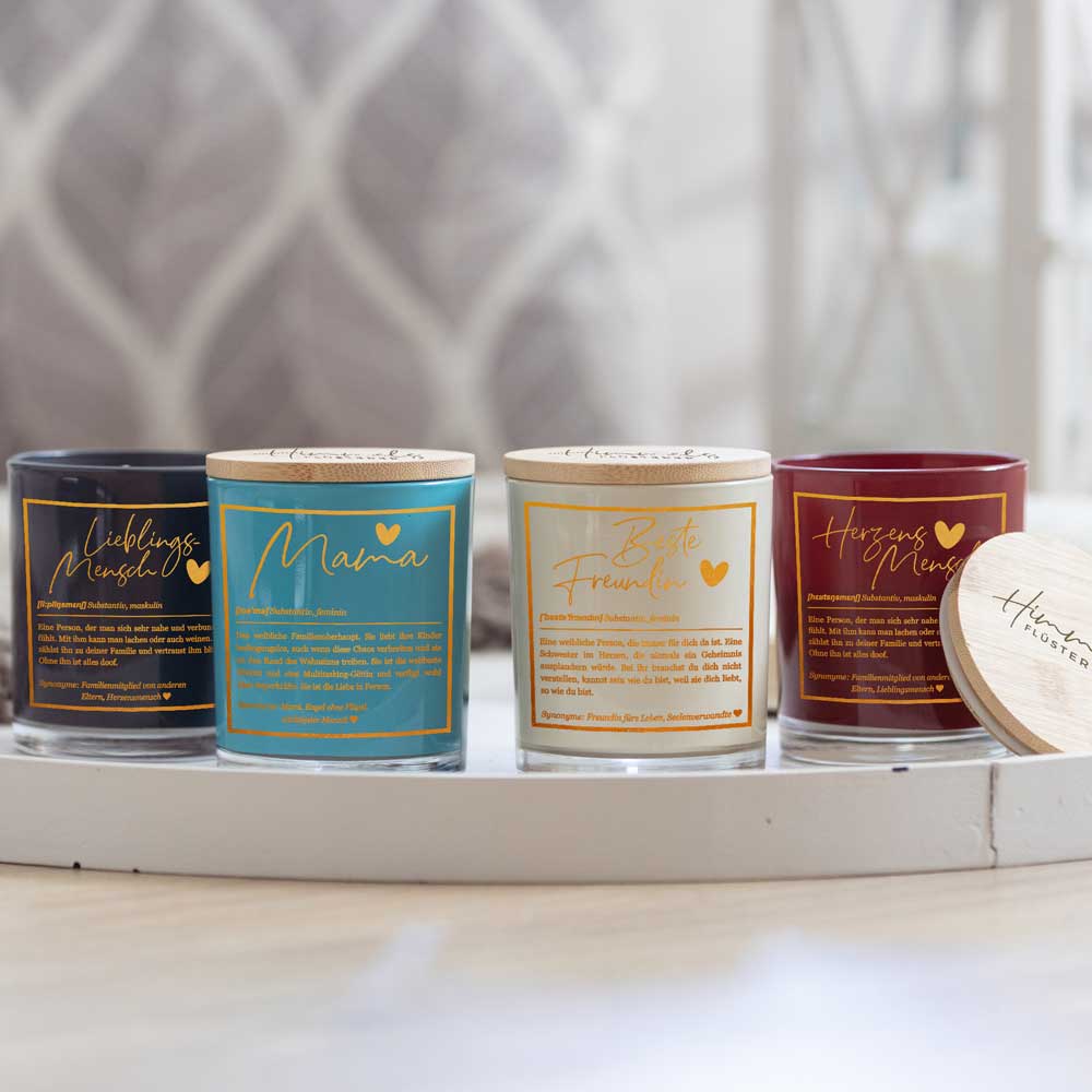 Duftkerze im Glas mit Spruch als Geschenk Nr. 1 "Definition" - Mittelgroß | Duft & Farbe wählbar | goldene Schrift | Handgegossen in Bayern | 100% Sojawachs | 200 g Wachs | 50 h Brenndauer