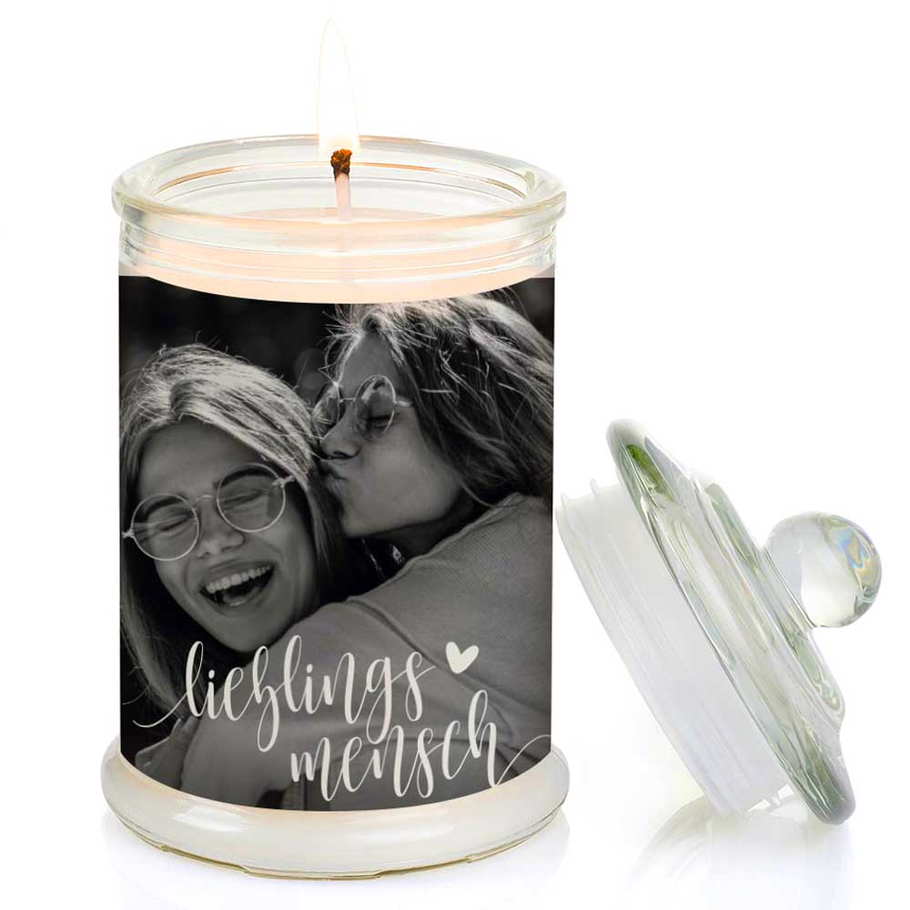 Personalisierbare Duftkerze für einen lieben Menschen, der dir nahe steht. Lade dein eigenes Foto hoch und wir erstellen dir dein ganz persönliches Kerzen-Foto-Geschenk. Unsere Duftkerzen werden von uns per Hand und aus 100% reinem Sojawachs gefertigt.