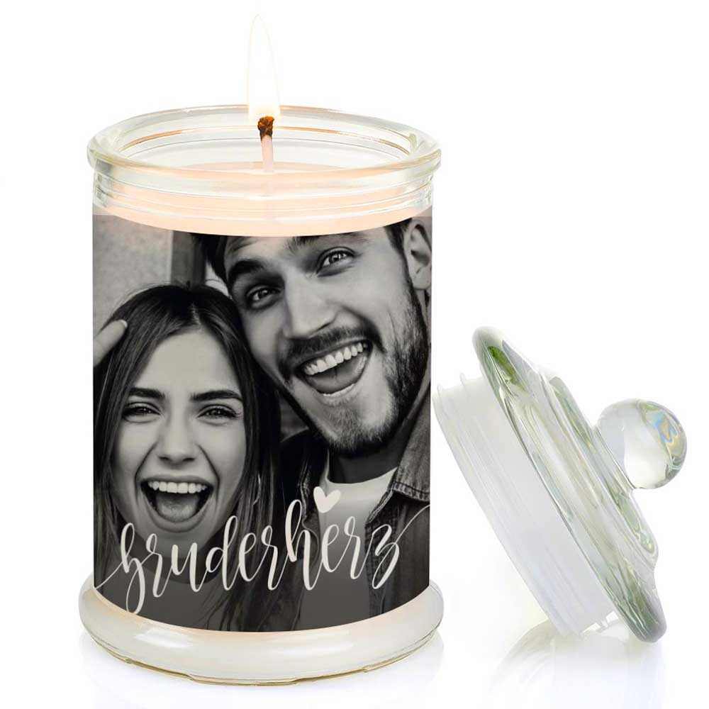 Personalisierbare Duftkerze für einen lieben Menschen, der dir nahe steht. Lade dein eigenes Foto hoch und wir erstellen dir dein ganz persönliches Kerzen-Foto-Geschenk. Unsere Duftkerzen werden von uns per Hand und aus 100% reinem Sojawachs gefertigt.