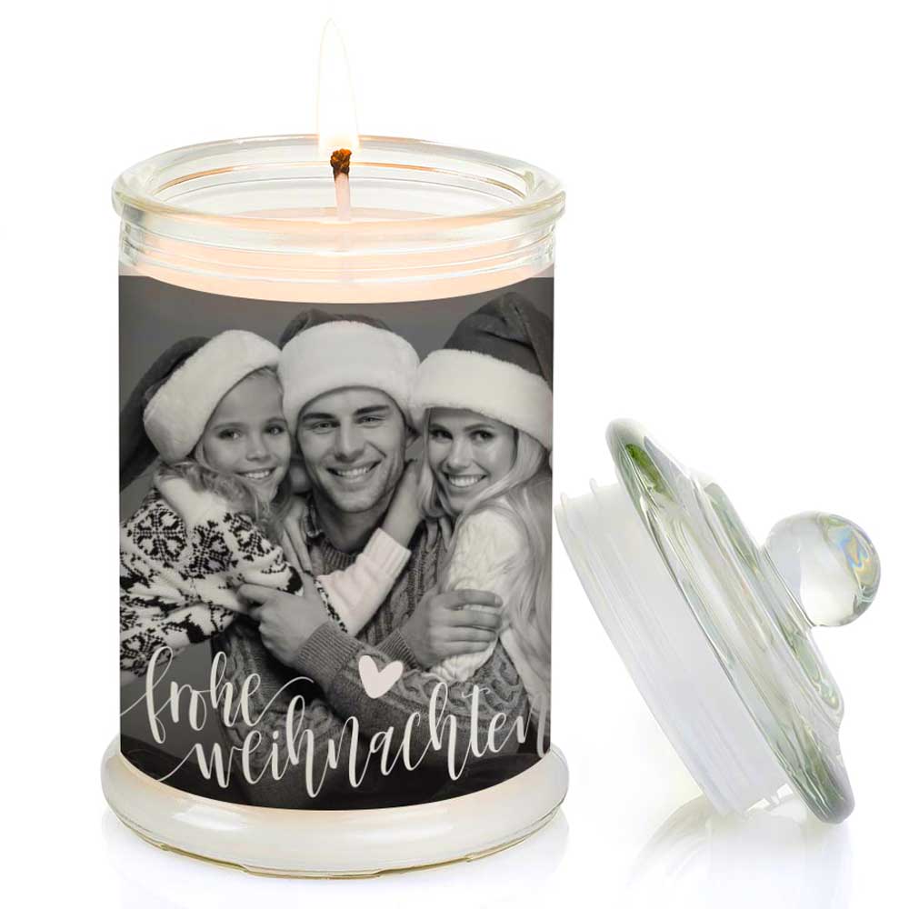 Duftkerze im Glas Nr. 7 "Foto" als personalisiertes Geschenk - Groß | Duft: Vanille | Handgegossen in Bayern | 100% Sojawachs | 400 g Wachs | bis zu 100 h Brenndauer