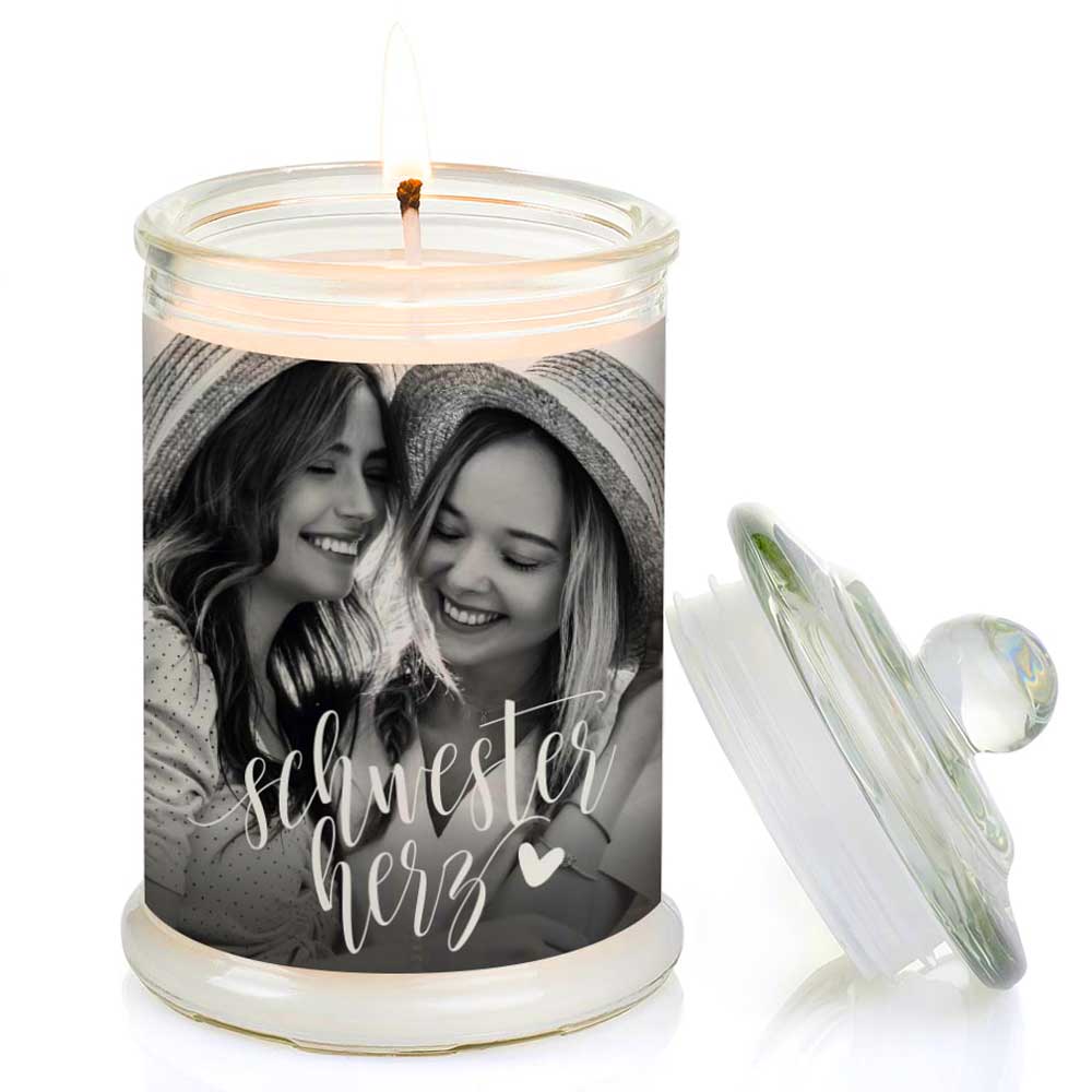 Personalisierbare Duftkerze für einen lieben Menschen, der dir nahe steht. Lade dein eigenes Foto hoch und wir erstellen dir dein ganz persönliches Kerzen-Foto-Geschenk. Unsere Duftkerzen werden von uns per Hand und aus 100% reinem Sojawachs gefertigt.
