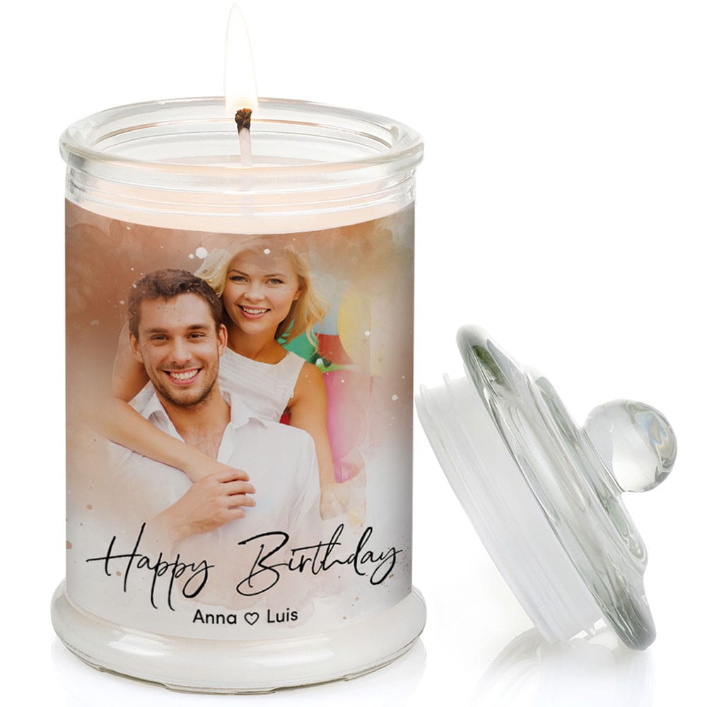 Personalisiere deine Duft-Kerze mit deinem Lieblingsbild, welches wir dir im einzigartigen Aquarell-Design auf das Kerzenglas drucken.