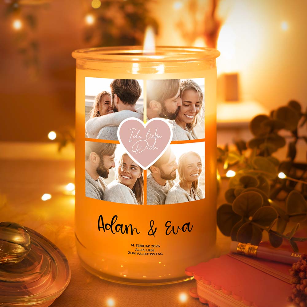 Personalisierbare Duftkerze für einen lieben Menschen, der dir nahe steht. Erstelle deine eigene ganz persönliche „Fotocollage #2“ Kerze als unglaublich schönes Geschenk. Unsere Duftkerzen werden von uns per Hand und aus 100% reinem Sojawachs gefertigt. Durch den Glasdeckel mit Gummi bleibt der Duft länger frisch und du kannst das Glas danach als dekoratives Aufbewahrungsglas verwenden! Einfach das Glas gründlich reinigen und fertig. Verwende es zur Dekoration als Windlicht, Aufbewahrungsgefäß, Teelicht - Glas oder aber als Pflanzentopf für Haus und Garten. Ideal als Geschenk zu Geburtstagen Weihnachten, Hochzeiten, zur Wohnungseinweihung oder einfach nur für Dich zum Wohlfühlen.