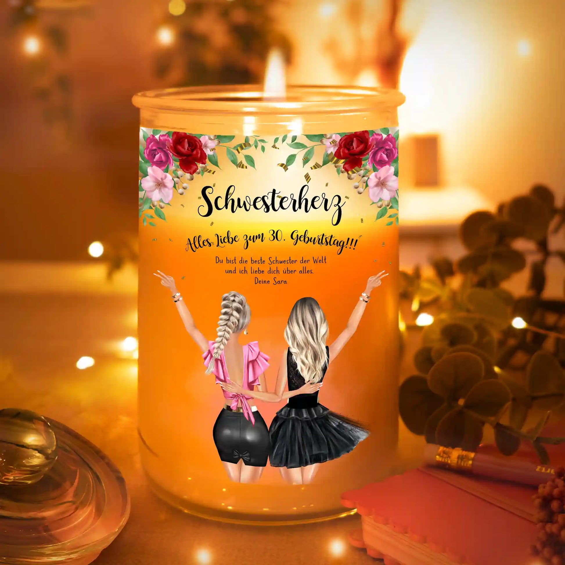 Personalisierbare Duftkerze für einen lieben Menschen, der dir nahe steht. Erstelle deine eigene ganz persönliche Kerze als unglaublich schönes Geschenk. Unsere Duftkerzen werden von uns per Hand und aus 100% reinem Sojawachs gefertigt. Durch den Glasdeckel mit Gummi bleibt der Duft länger frisch und du kannst das Glas danach als dekoratives Aufbewahrungsglas verwenden! Einfach das Glas gründlich reinigen und fertig. Verwende es zur Dekoration als Windlicht, Aufbewahrungsgefäß, Teelicht - Glas oder aber als Pflanzentopf für Haus und Garten. Ideal als Geschenk zu Geburtstagen Weihnachten, Hochzeiten, zur Wohnungseinweihung oder einfach nur für Dich zum Wohlfühlen.