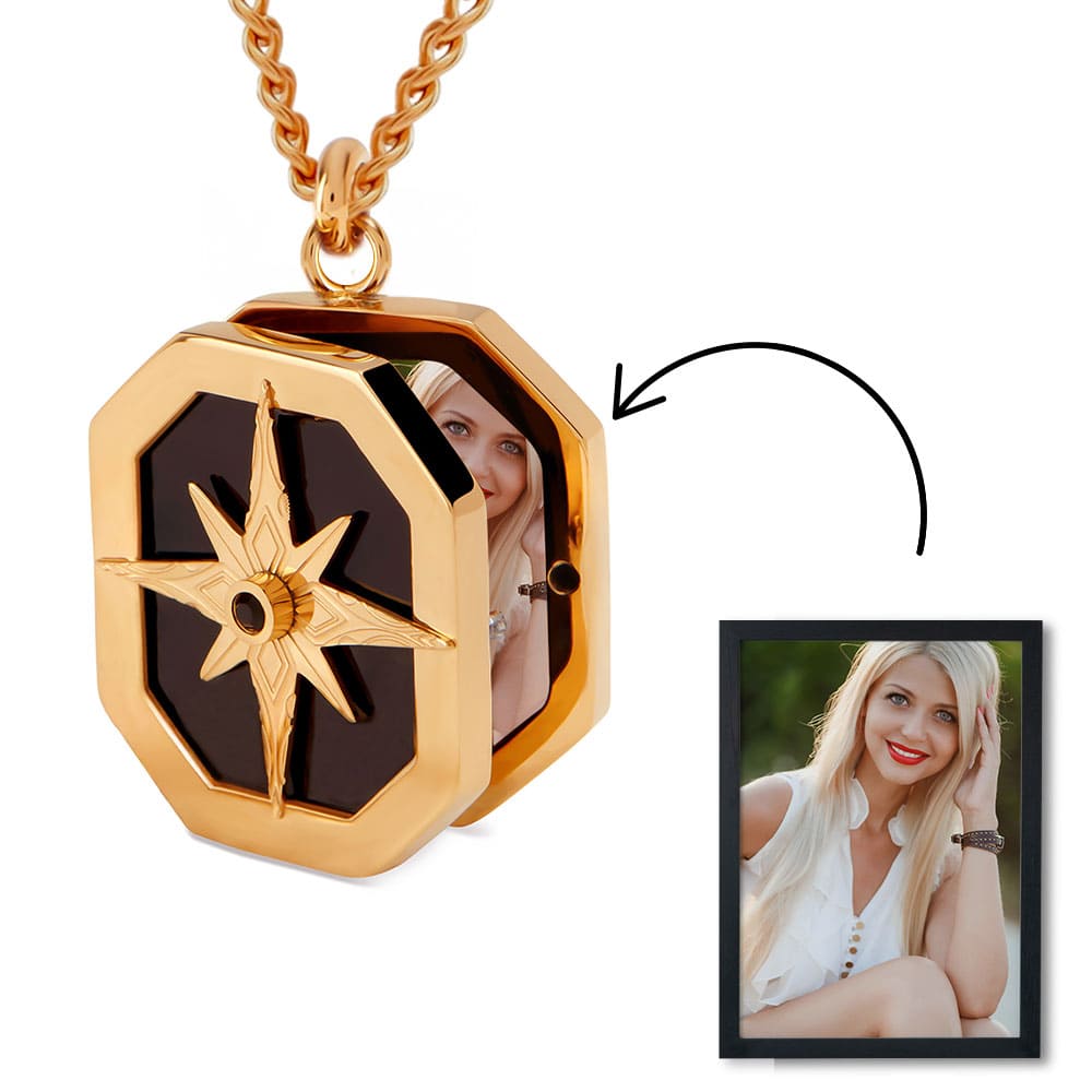 Für Herren: Fotomedaillon-Halskette "Kompass"