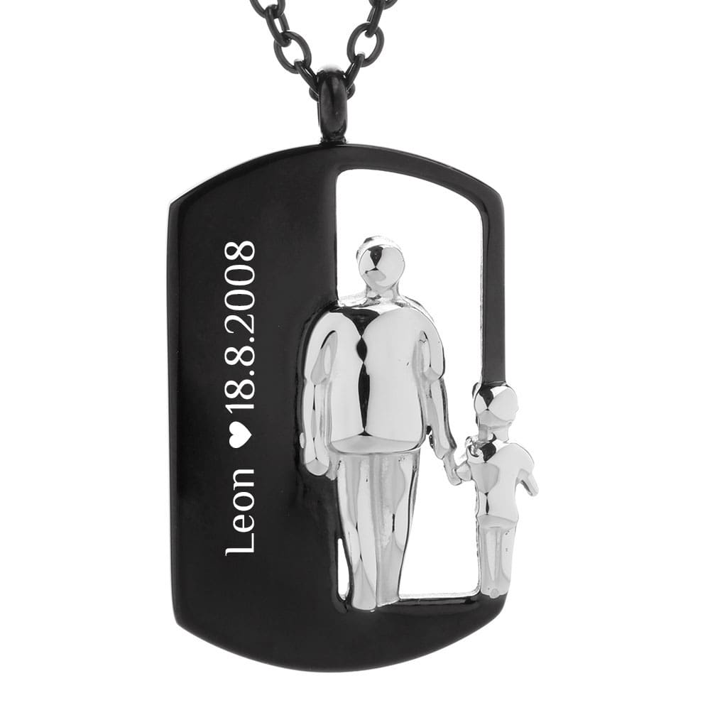 Für Herren: Gravur-Halskette mit Kind. Ein Symbol für die Liebe des Vaters zu seinem Kind. Dieses Schmuckstück sieht wunderschön aus und es ist zugleich ein Erinnerungsstück für die Ewigkeit. Einizigartiger Gravurschmuck von Himmelsflüsterer!