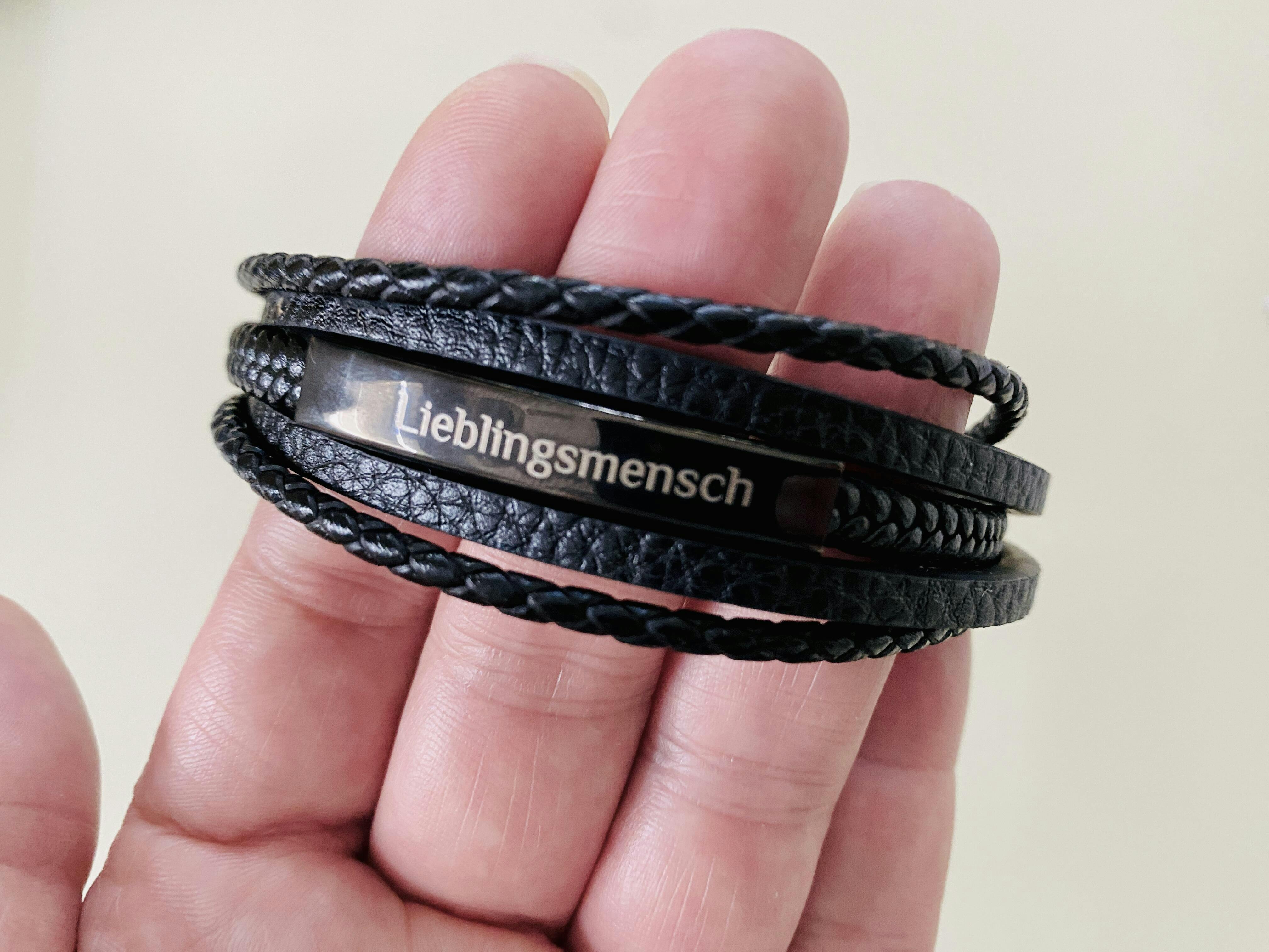 Für Herren: Leder Gravur-Armband Nr. 1 | individuelle Größenanpassung | Magnetischer Verschluss | Echtes Leder