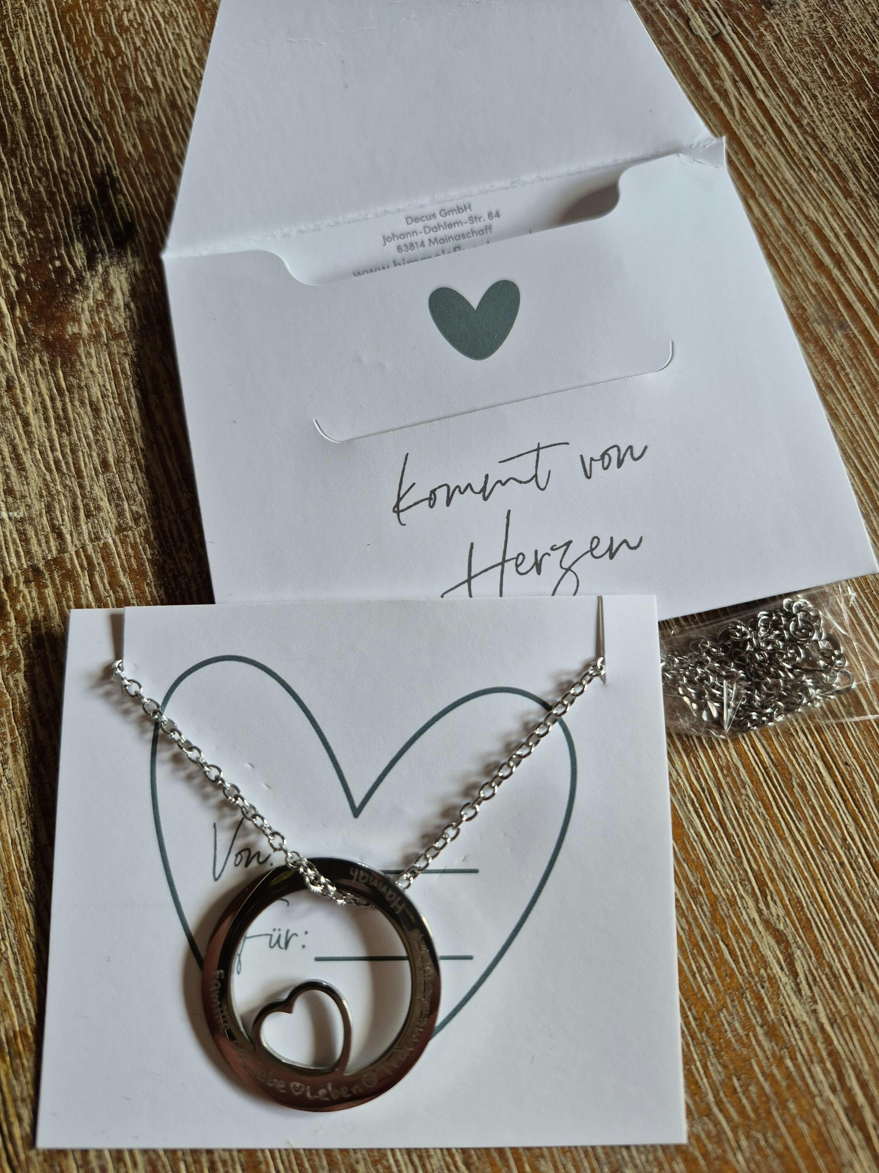 Unsere Halskette trägt einen Kreis mit einem darin liegenden Herzchen. Auf den Kreis kannst du deine individuelle Gravur eingravieren lassen. Dabei kannst du deinem Herzen freien Lauf lassen und alle liebevollen Momente, wie zum Beispiel das erste Date mit deinem Mann oder einen Geburtstag sowie die wichtigsten Menschen in deinem Leben, wie zum Beispiel Mama, Papa, Opa, Oma verewigen und jederzeit bei dir tragen. Sei einfach du selbst - mit Himmelsflüsterer!
