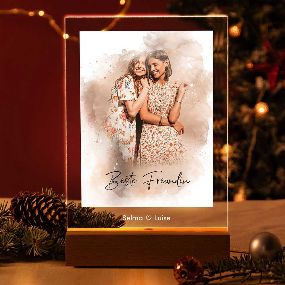 Personalisierte Fotolampe Nr. 8 "Aquarell" | LED Acryllampe mit beleuchtetem Druck