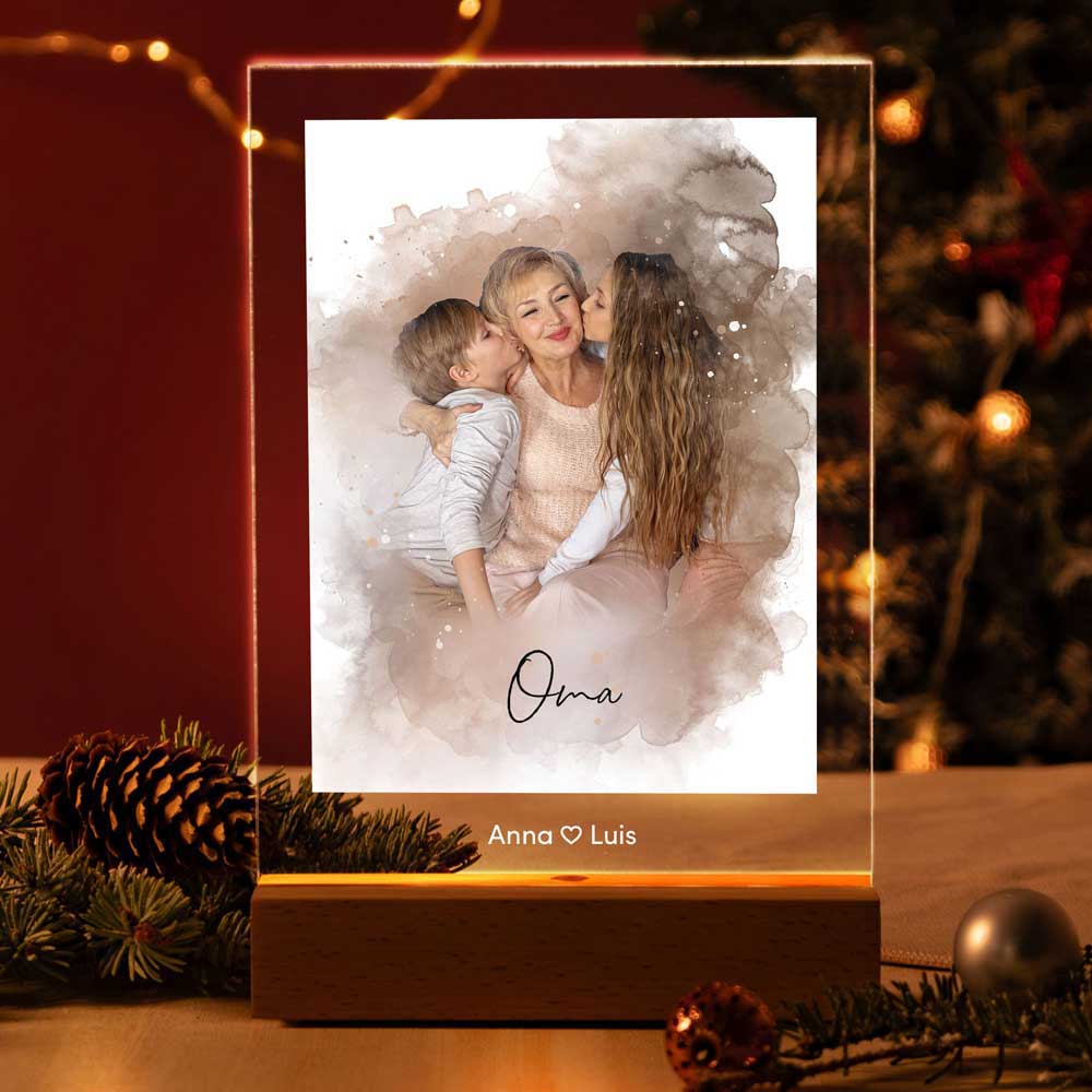Personalisierte Fotolampe Nr. 8 "Aquarell" | LED Acryllampe mit beleuchtetem Druck