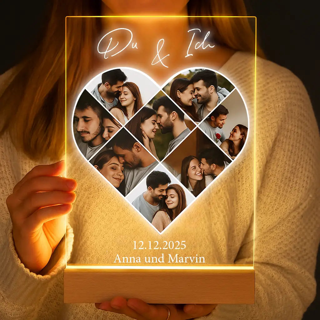 Personalisierte LED-Lampe aus Acrylglas "Fotocollage #5 Herz"