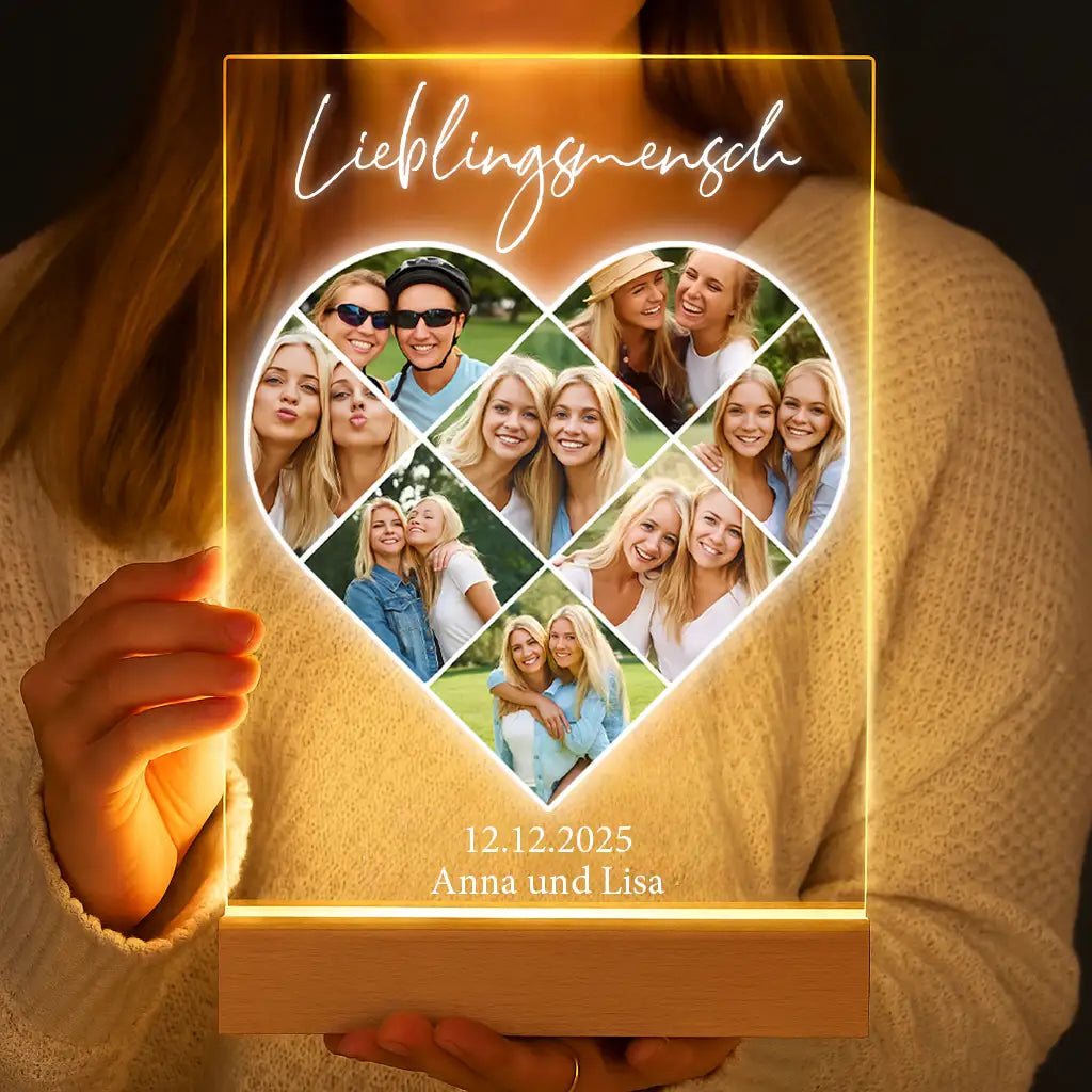 Erstelle dein eigenes ganz persönliches „Fotocollage #5“ Bild als unglaublich schönes Geschenk und verschenke es auf einer LED-Lampe aus Acrylglas (DIN A5).