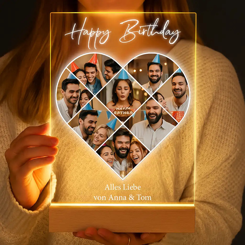 Personalisierte LED-Lampe aus Acrylglas "Fotocollage #5 Herz"