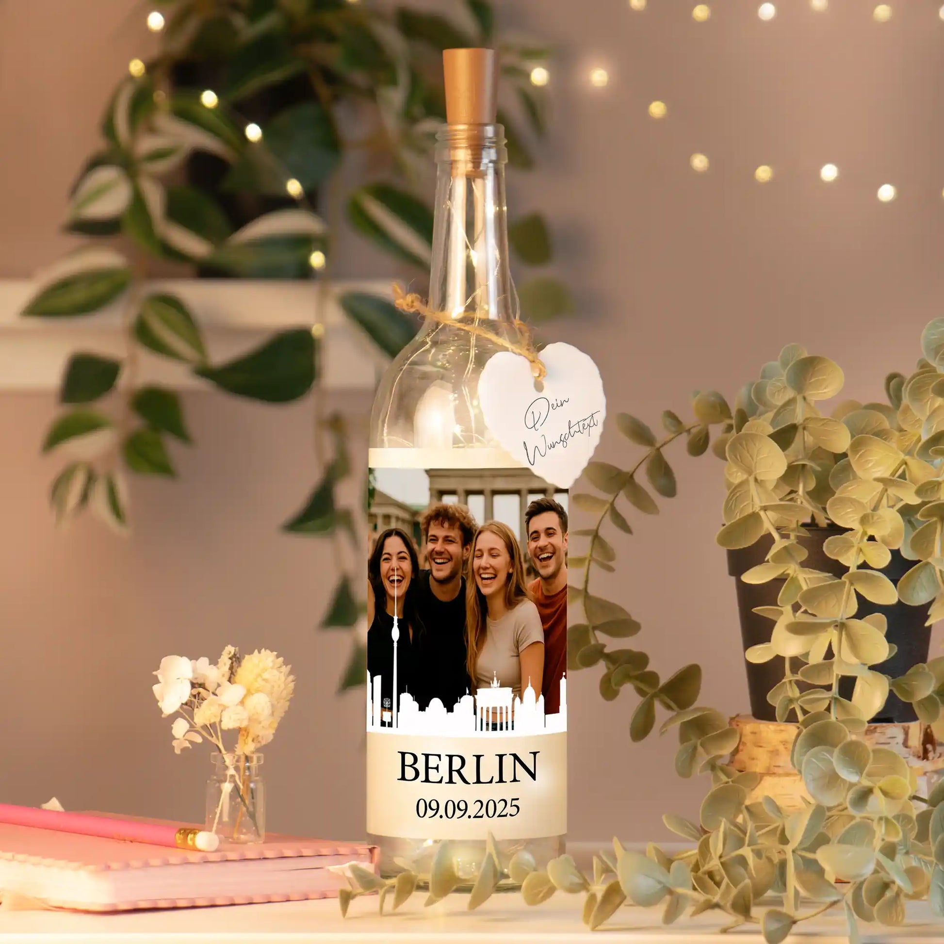 Personalisierte Lichterflasche "Unsere Städtereise"