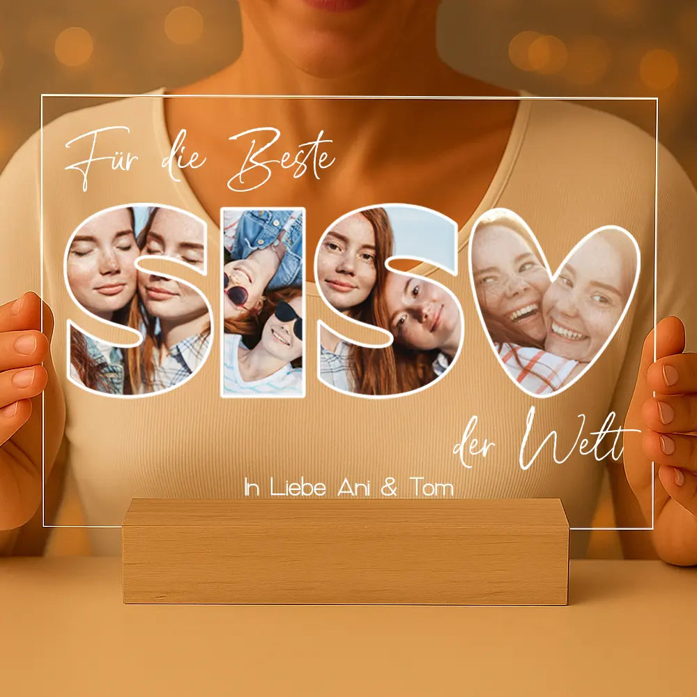 Erstelle dein eigenes ganz persönliches „Fotocollage #3“ Bild als unglaublich schönes Geschenk und verschenke es auf einem Acrylglas mit Holzfuß (DIN A5).