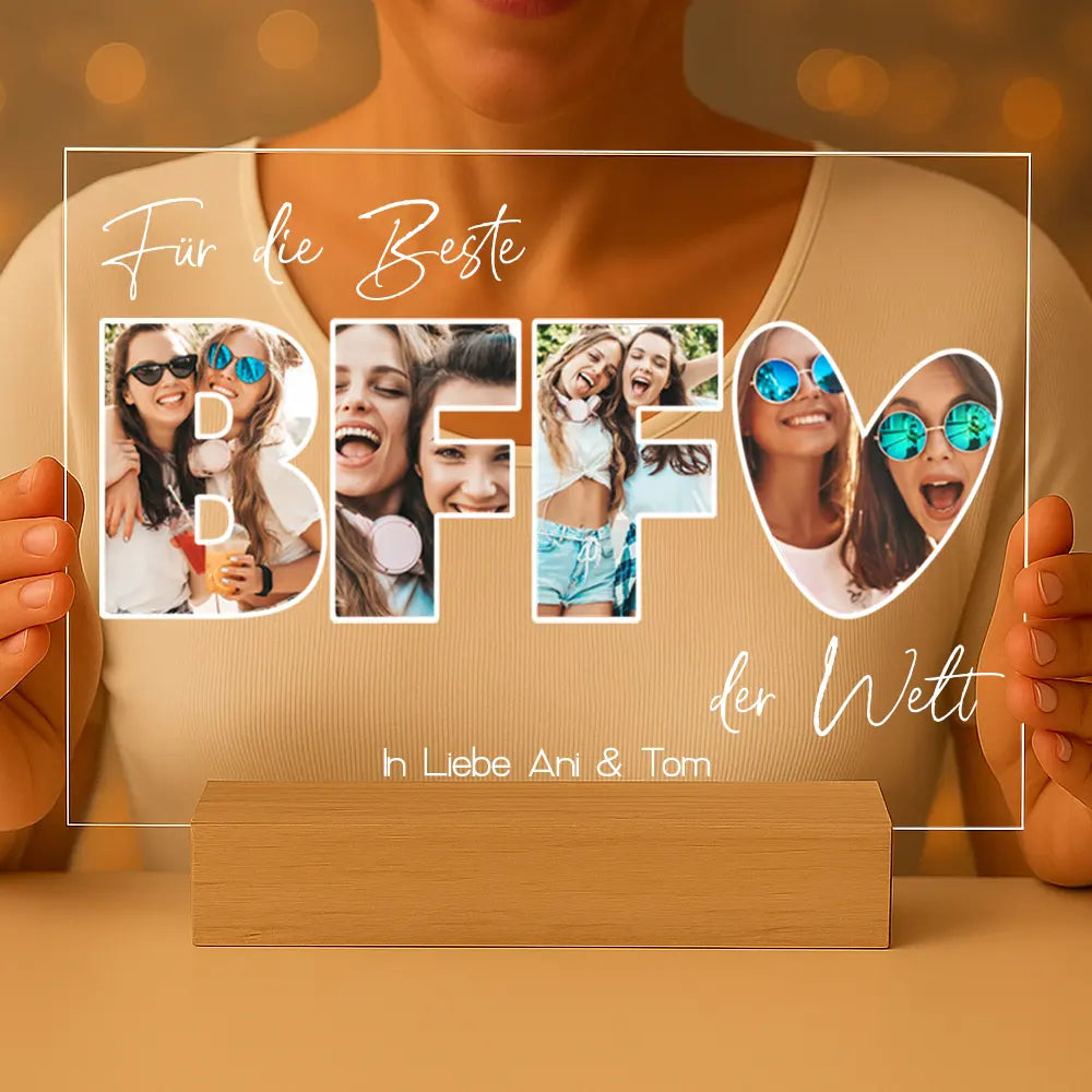 Erstelle dein eigenes ganz persönliches „Fotocollage #3“ Bild als unglaublich schönes Geschenk und verschenke es auf einem Acrylglas mit Holzfuß (DIN A5).