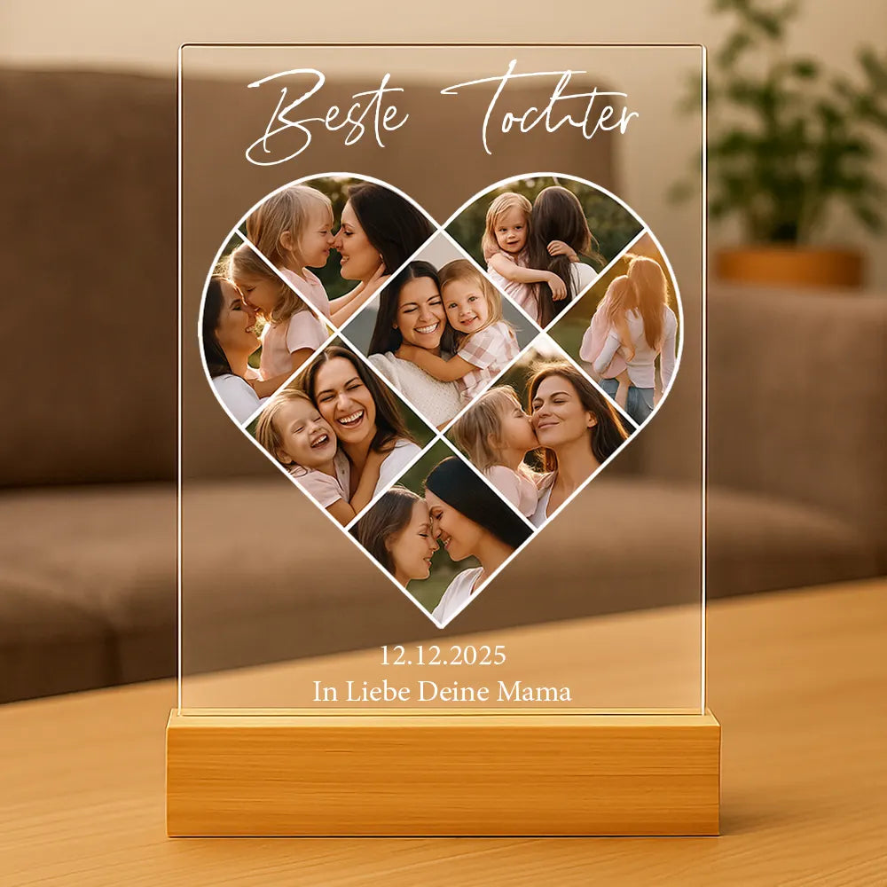Erstelle dein eigenes ganz persönliches „Fotocollage #5“ Bild als unglaublich schönes Geschenk und verschenke es auf einem Acrylglas mit Holzfuß (DIN A5).